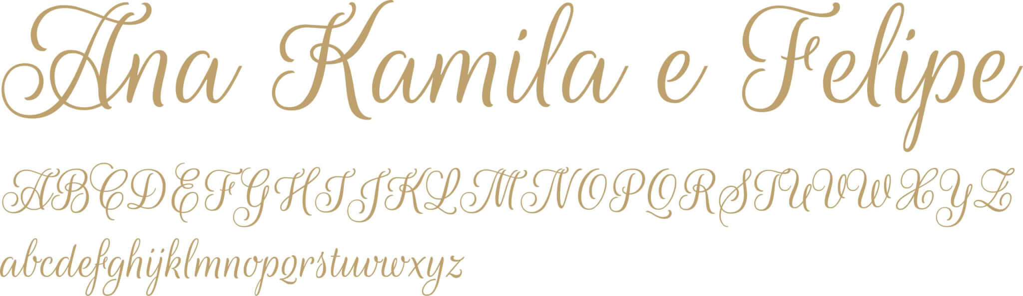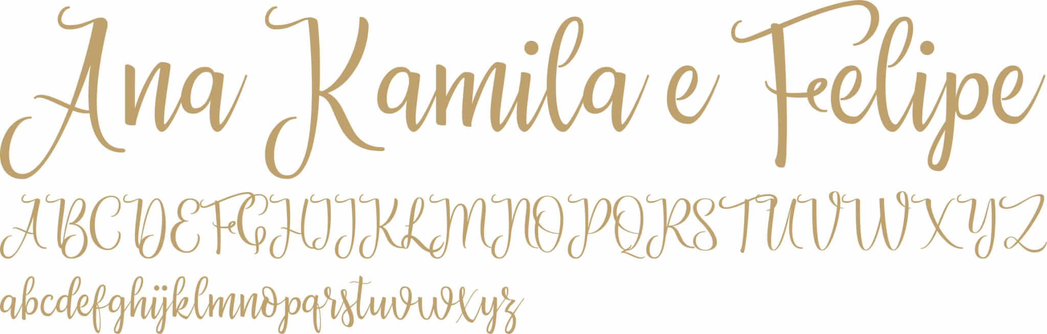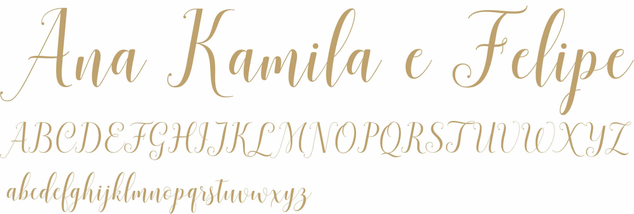 A letra é bem divertida, como seu nome, abraços e beijos, em inglês. Ótima para o nome dos noivos, mas não recomendada para o restante do texto. Recomendamos usar este tipo de fonte com alguma mais simples, com um estilo de letra bastão.