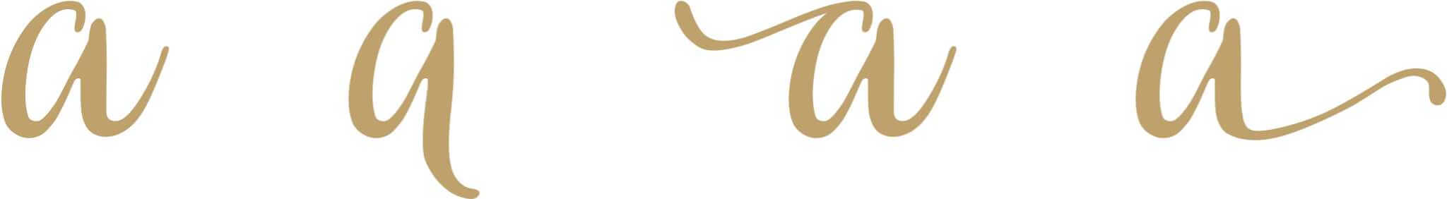 A queridinha de todas ficou para o final, esta fonte tem diversas alternativas para cada letra. Veja na imagem abaixo as quatro opções para a letra “a”. Sensacional!! Com ela é possível compor de diversas formas o nome do casal. Como pode ser usada trabalhada ou mais simples, você pode usar a letra mais rebuscada nos nomes e mais simples no nome da igreja e do buffet. Para o restante do texto, use uma letra mais tradicional.